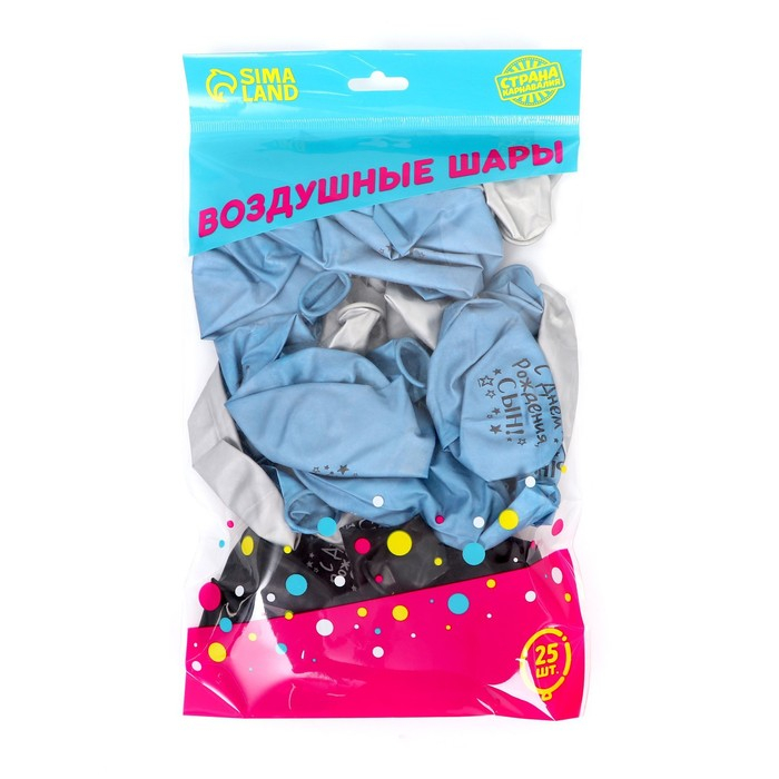 Воздушный шар латексный 12" "С днём рождения, сын", хром, 25 шт.