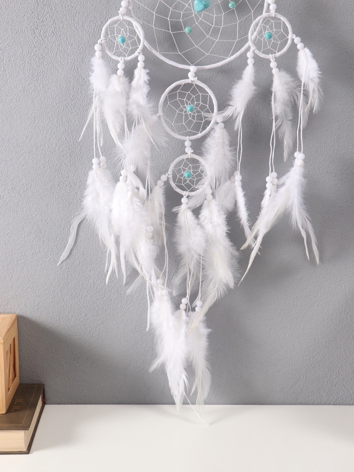 Ловец снов "Оберег с камнем Бирюза" белый 35х66 см