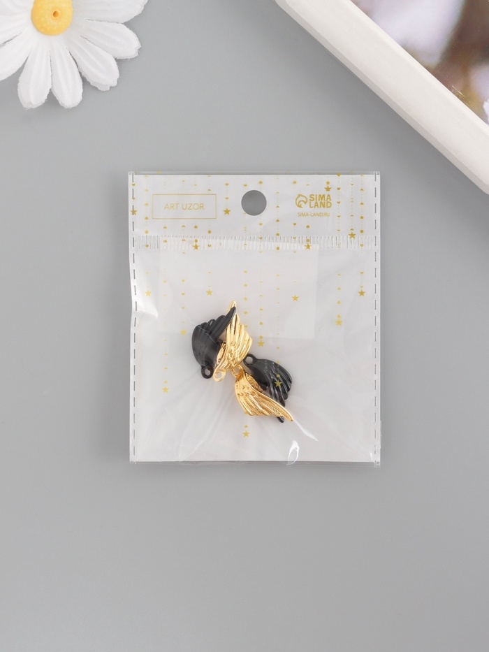 Замок магнитный металл "Крылья" набор 2 шт чёрно-золотой 2,6х1,9 см