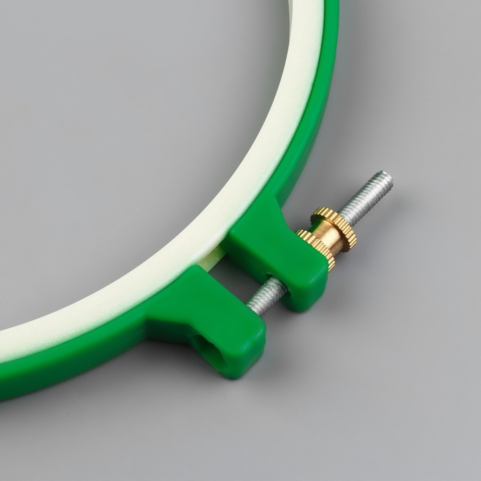 Эти пластиковые пяльцы просты и удобны в обращении: они лёгкие, плотно зажимают ткань и обеспечивают нужное натяжение, не деформируя полотно. Приспособление широко используется для вышивки крестиком или гладью.