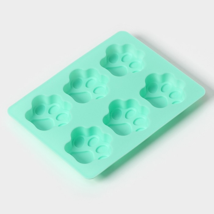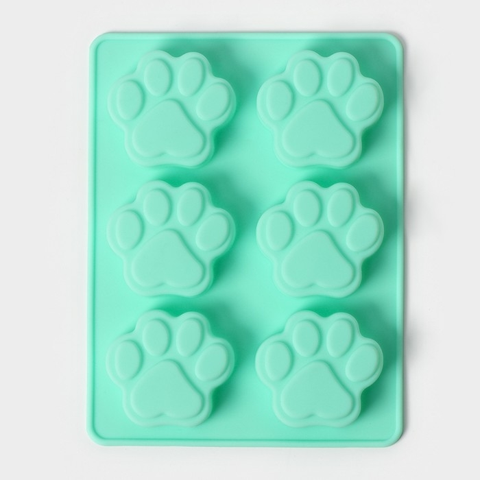 Форма для выпечки Доляна «Животные.Лапка», силикон, 18×13,8 см, 6 ячеек (5×5,4 см), бирюзовая