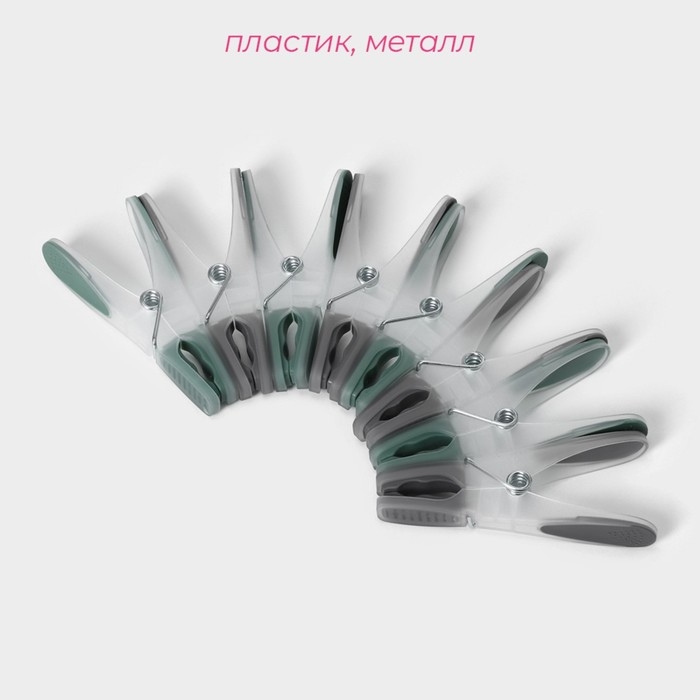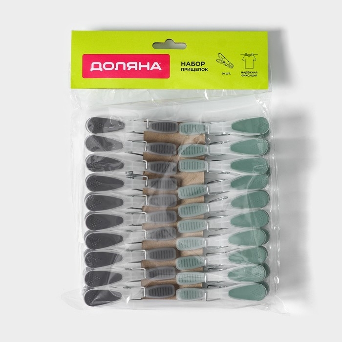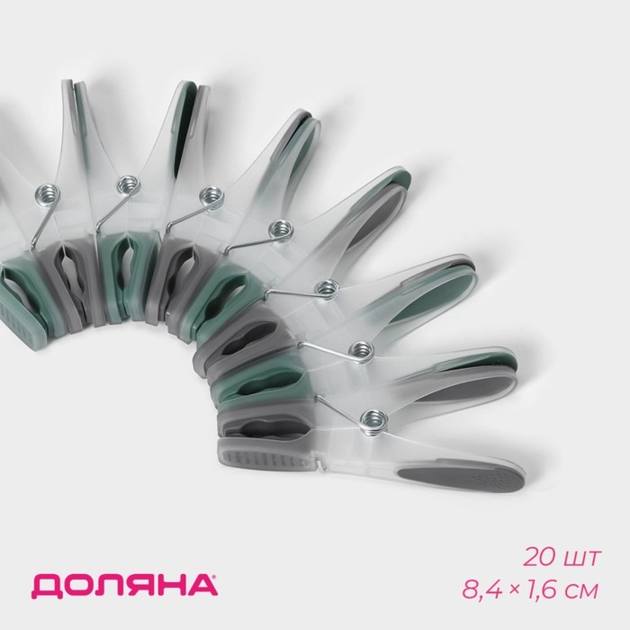 Набор прищепок бельевых Доляна, 20 шт, пластик, 8,4×1,6 см, цвет серо-зелёный