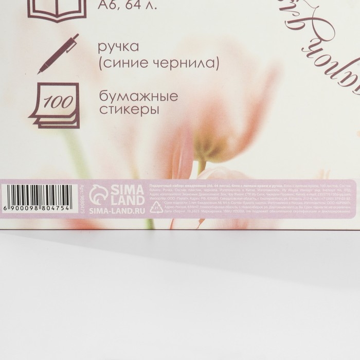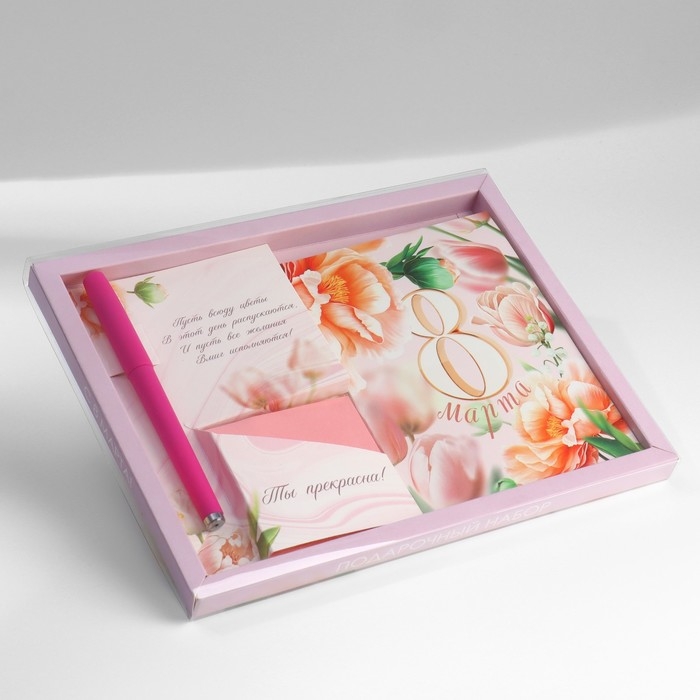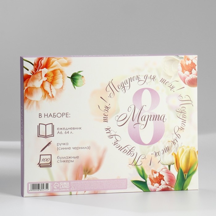 Подарочный набор: ежедневник А6, блок с липким слоем, ручка «8 марта»