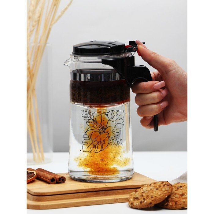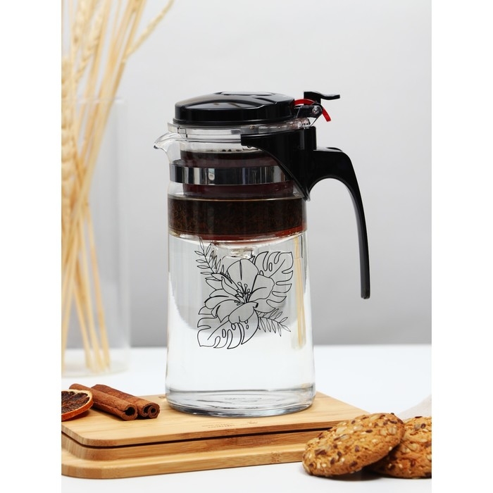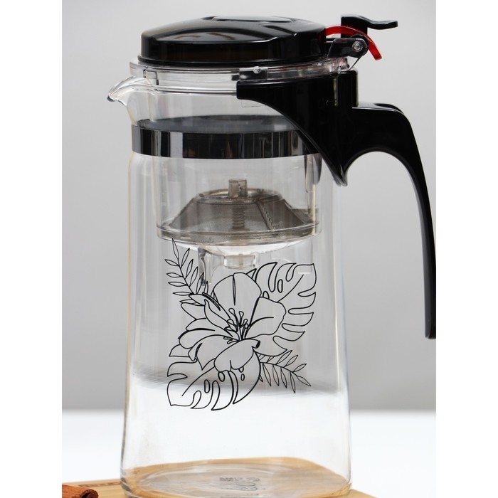 Чайник заварочный стеклянный Дорого внимание «Цветы», 900 мл