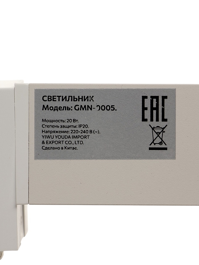 Трековый светильник линейный, поворотный, 20 Вт, 1800 Лм, 4000К, IP20, белый