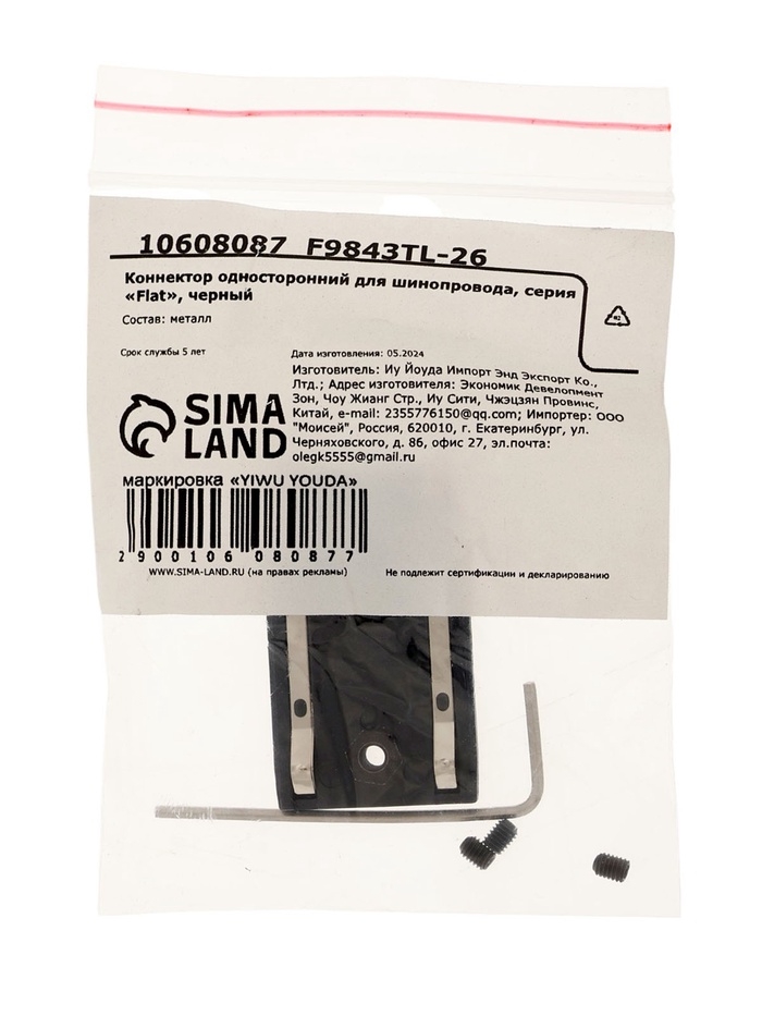 Коннектор односторонний для шинопровода, серия "Flat", черный