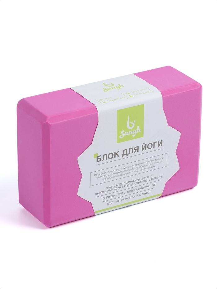 Блок для йоги 23 х 15 х 7,5 см, вес 120 гр, цвет розовый