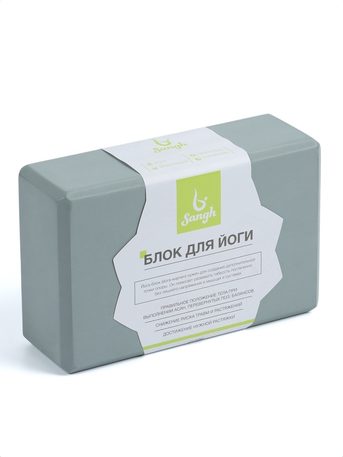 Блок для йоги 23 х 15 х 7,5 см, вес 120 гр, цвет серый