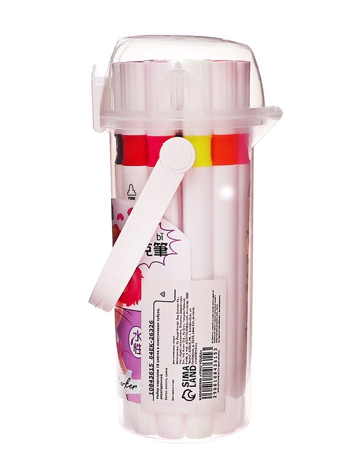 Набор маркеров 18 цветов в пластиковом тубусе, двусторонние