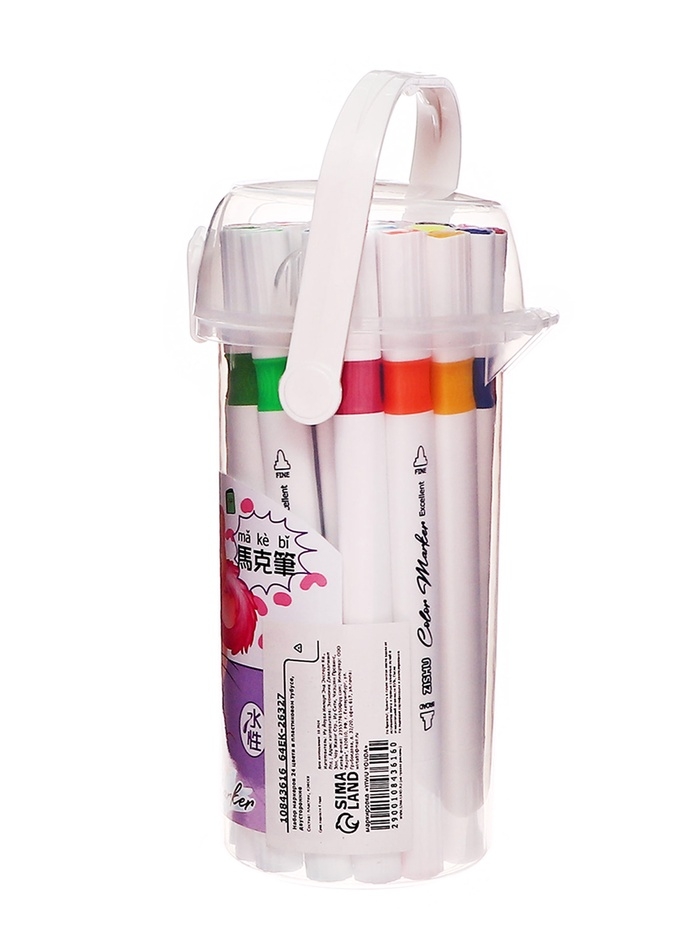 Набор маркеров 24 цвета в пластиковом тубусе, двусторонние