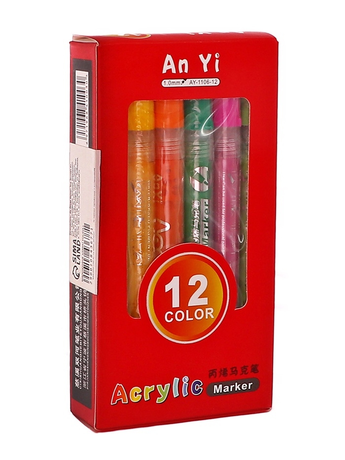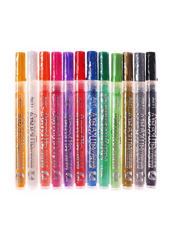 Набор акриловых маркеров 12 штук, пулевидный наконечник 2мм, толщина линии от 1мм