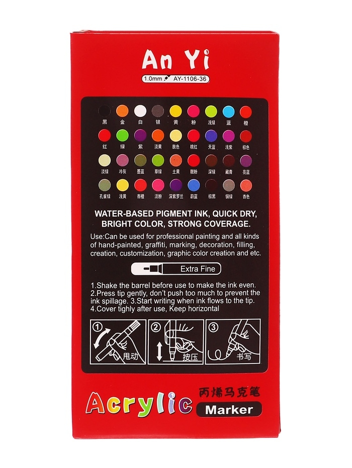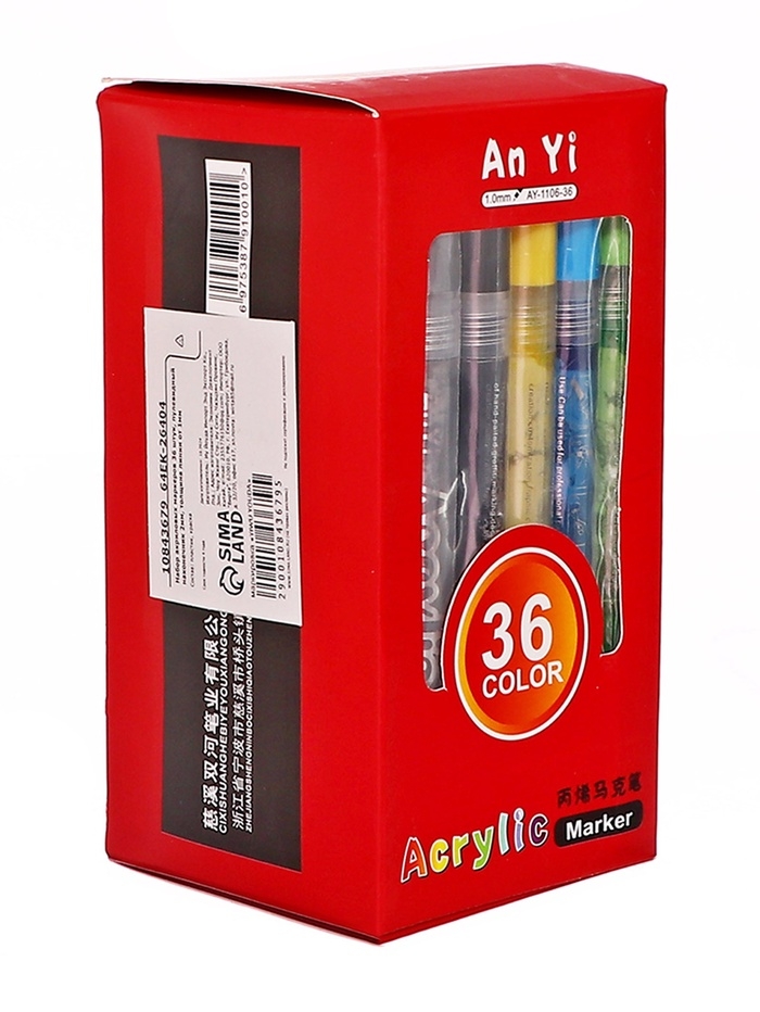 Набор акриловых маркеров 36 штук, пулевидный наконечник 2мм, толщина линии от 1мм