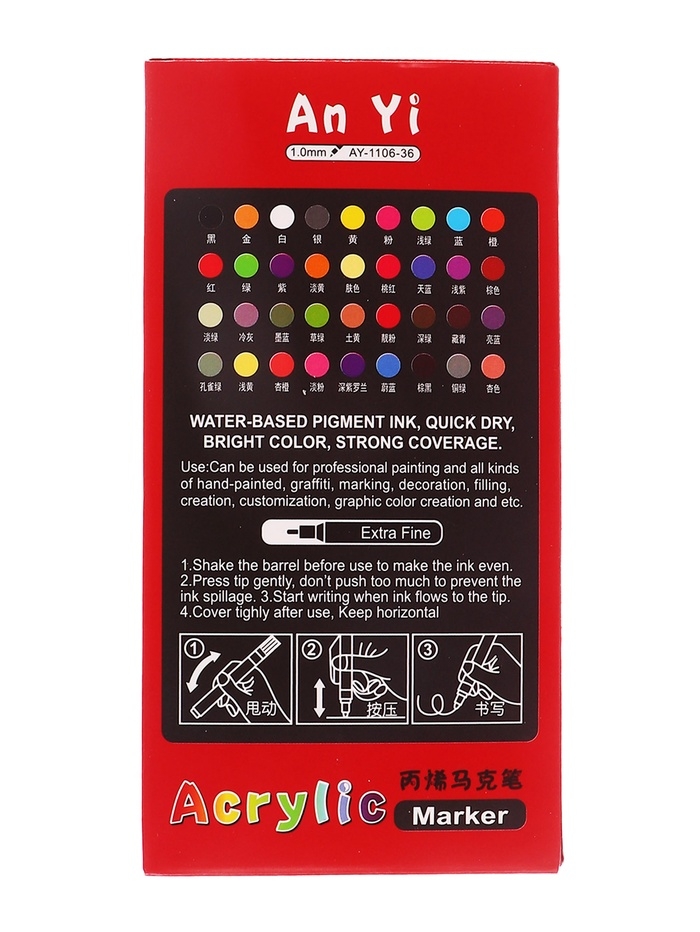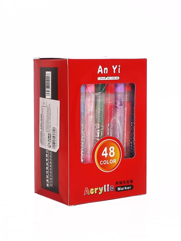 Набор акриловых маркеров 48 штук, пулевидный наконечник 2мм, толщина линии от 1мм