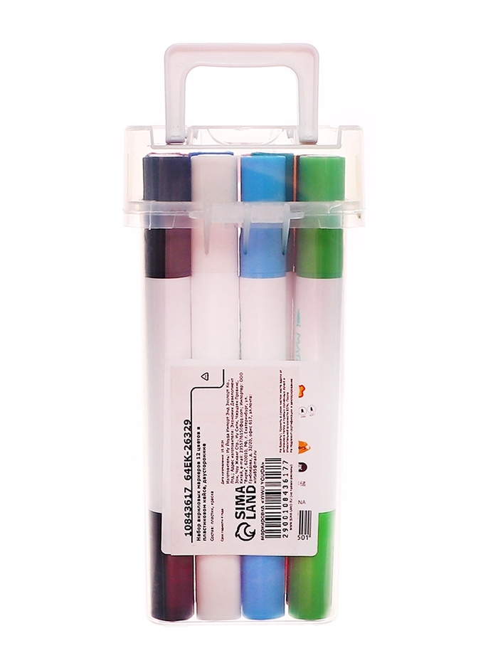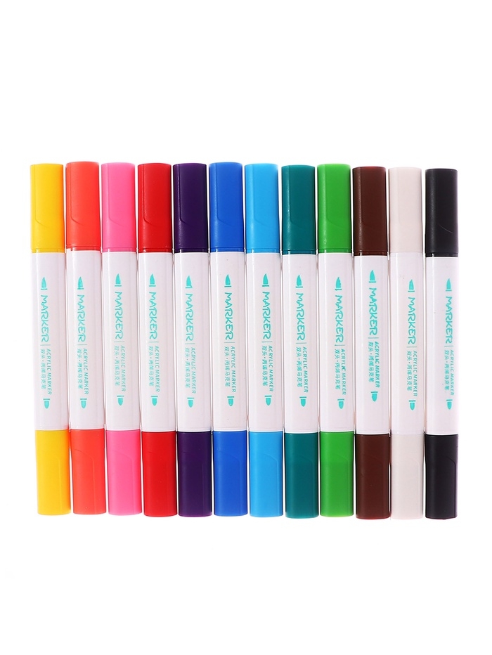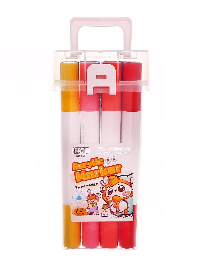 Набор акриловых маркеров 12 цветов в пластиковом кейсе, двусторонние