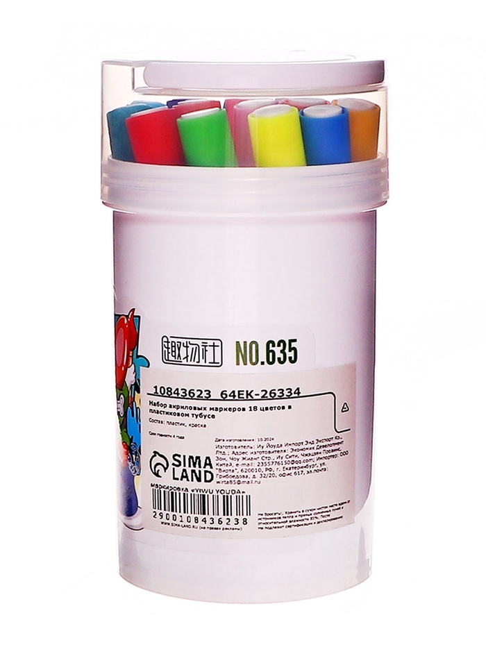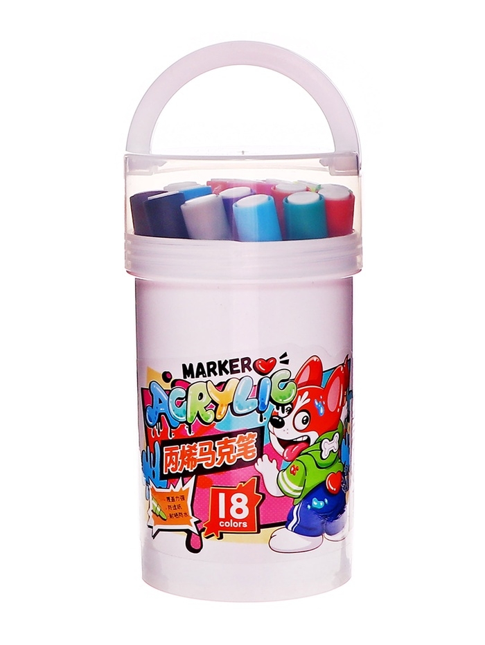 Набор акриловых маркеров 18 цветов в пластиковом тубусе