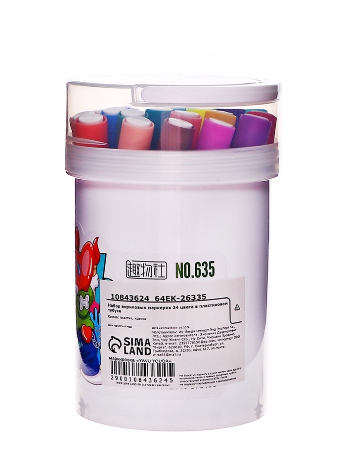 Набор акриловых маркеров 24 цвета в пластиковом тубусе