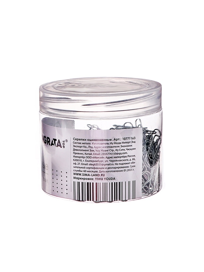 Скрепки 22мм оцинкованные в пластиковой тубе 400 штук