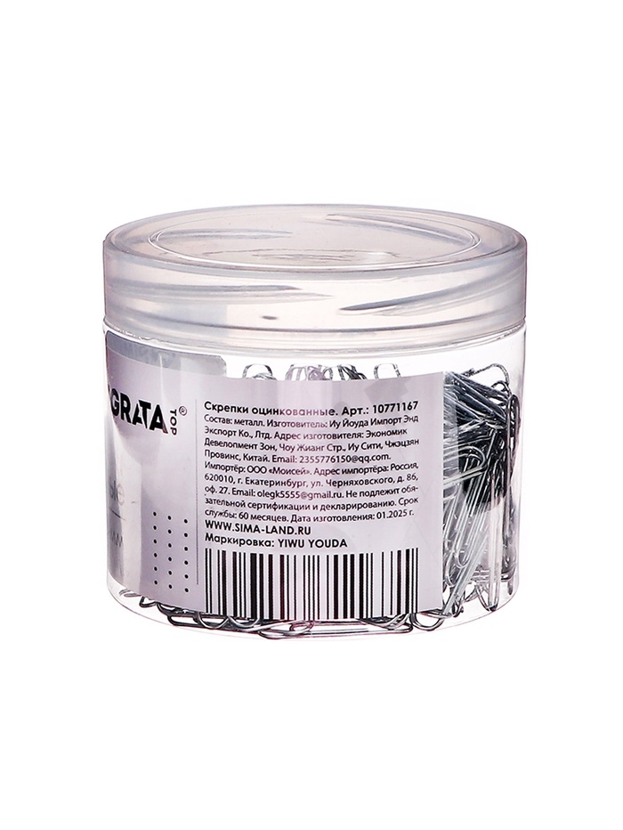 Скрепки 25мм оцинкованные в пластиковой тубе 400 штук