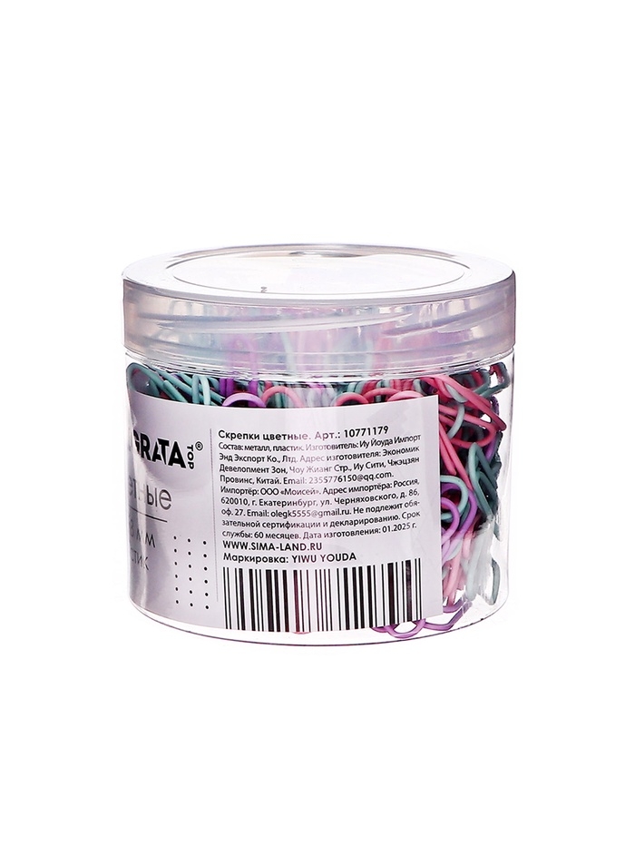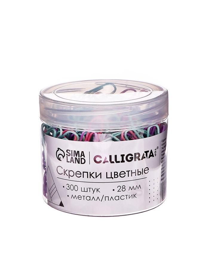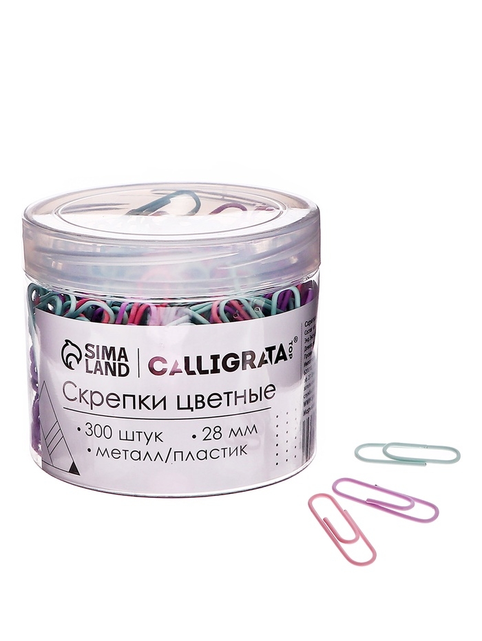 Скрепки 28мм пастель в пластиковой тубе 300 штук