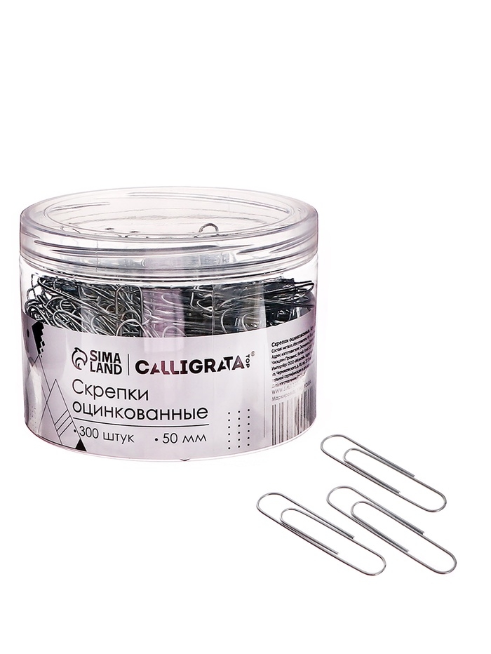 Скрепки 50мм оцинкованные в пластиковой тубе 300 штук