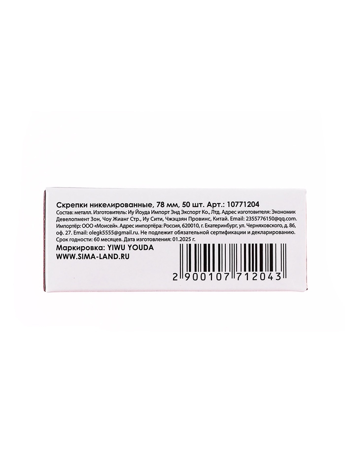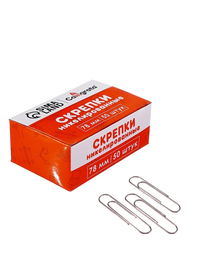 Скрепки 78мм никелированные в картонной коробке 50 штук