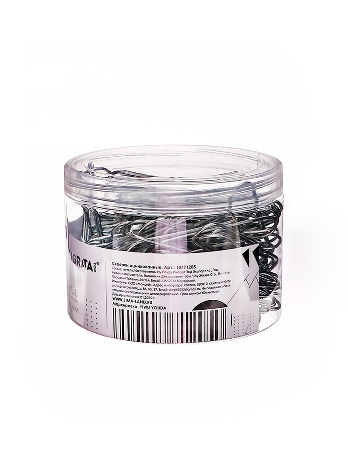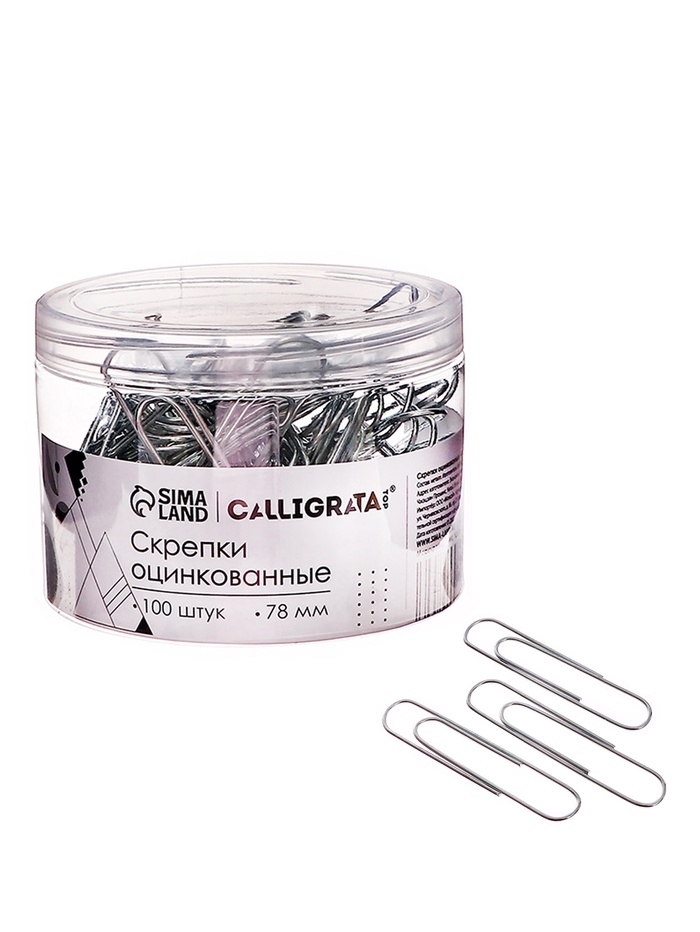 Скрепки 78мм оцинкованные в пластиковой тубе 100 штук