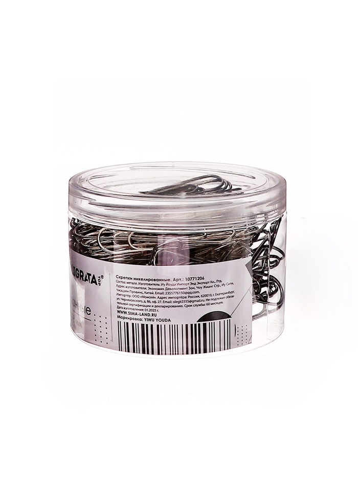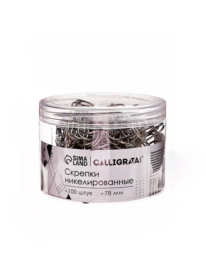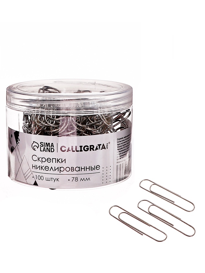 Скрепки 78мм никелированные в пластиковой тубе 100 штук