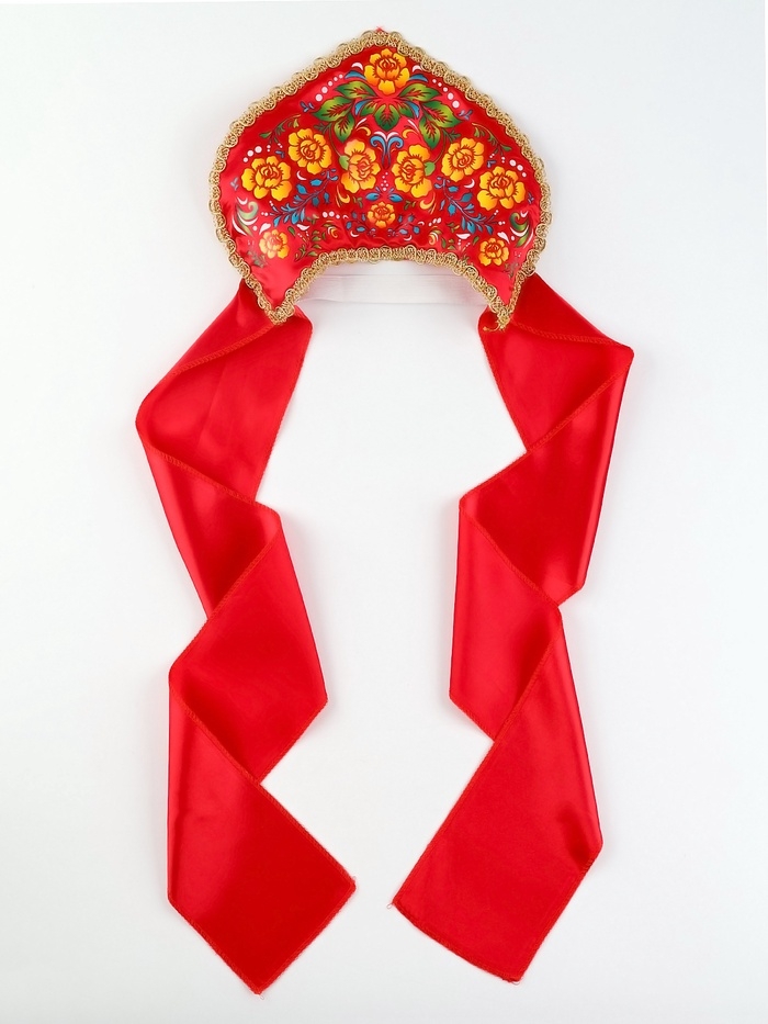 Карнавальный кокошник "Красочная роспись", цвет красный, р-р 54-58