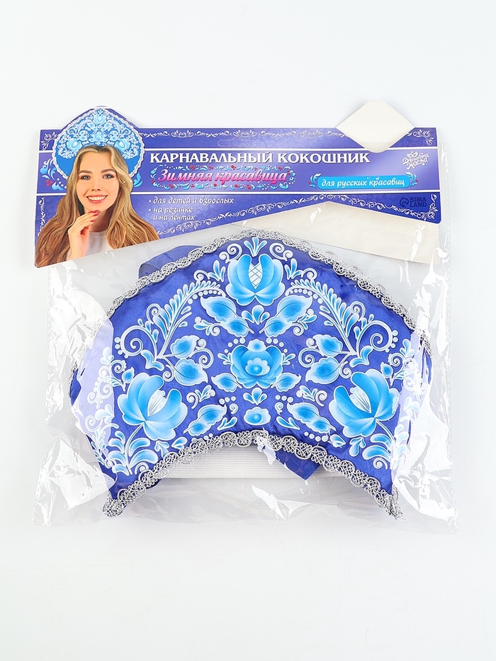 Карнавальный кокошник "Зимняя красавица", цвет синий, р-р 54-58