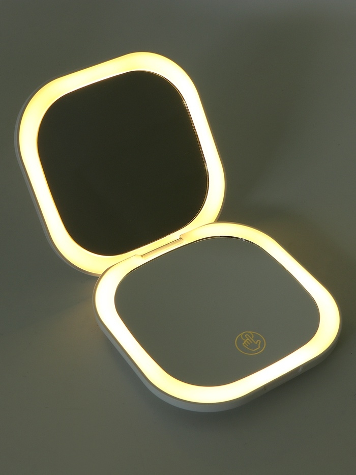 Зеркало косметическое, подсветка 9х9х1,3 см, 1 диод, увеличение, от АКБ, белое