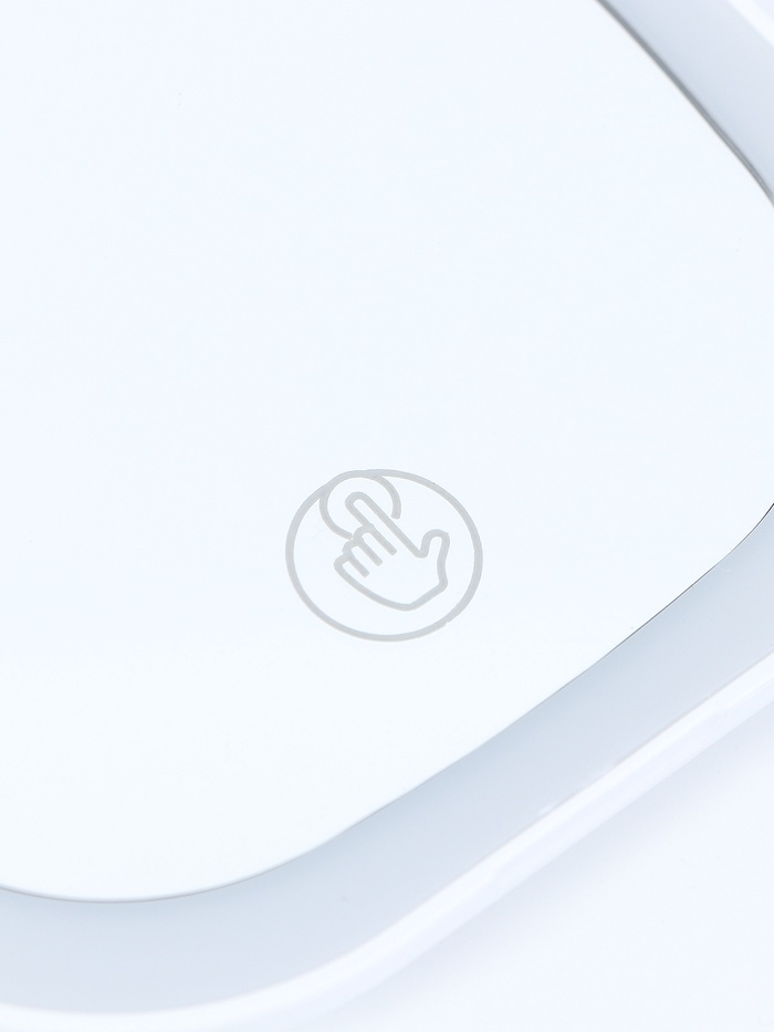 Особенностью зеркала является светодиодна подсветка по кромке двух зеркал. Настроить подсветку можно под свой вкус: выберите холодный или теплый свет или выберите нейтральный белый. Регулировка происходит при помощи сенсорной кнопки на зеркальной поверхности. Также для удобства и расширения функций мы сделали одно из зеркал с функцией увеличения, чтобы вы смогли рассмотреть всё в деталях.