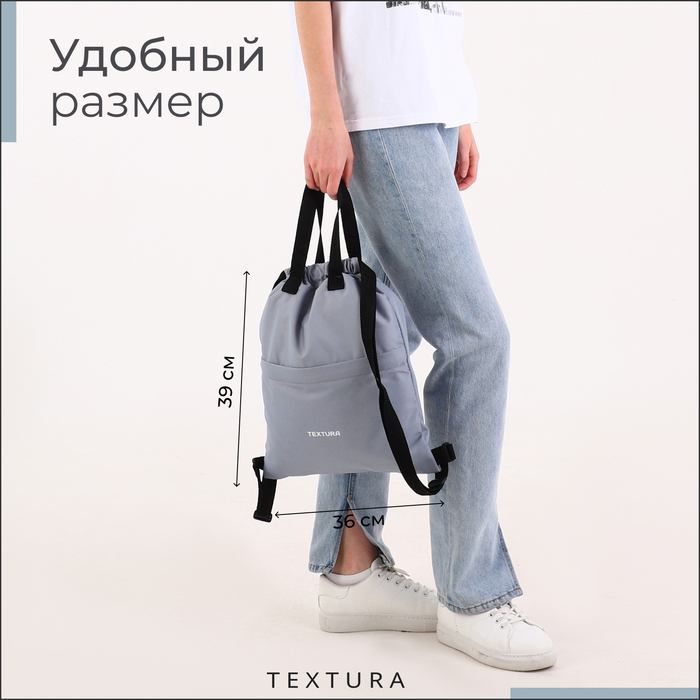 Мешок для обуви на стяжке, наружный карман, TEXTURA, цвет серый
