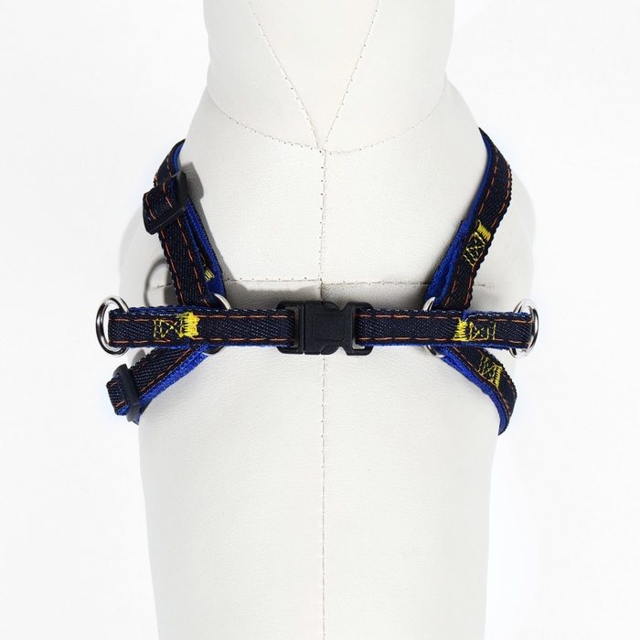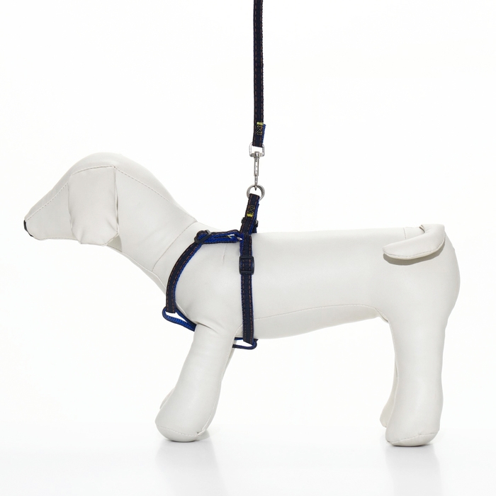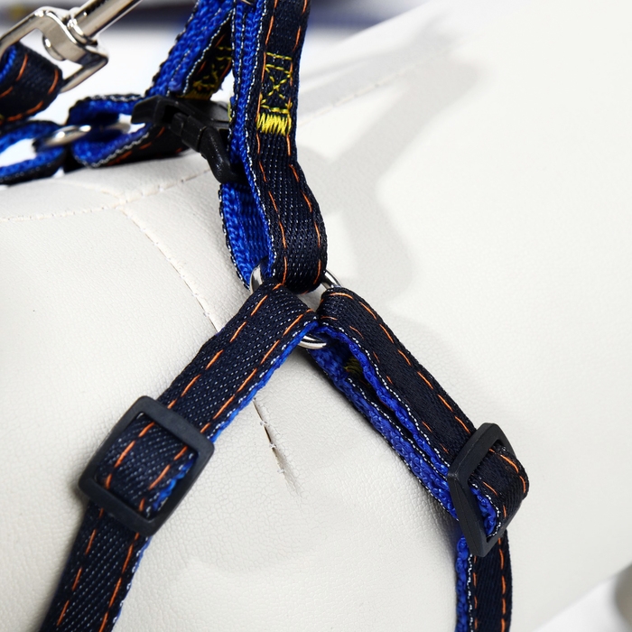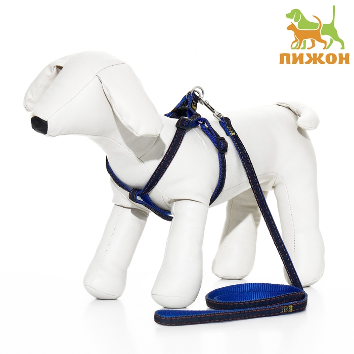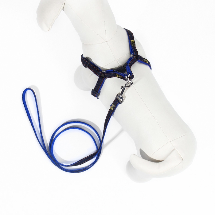 Комплект "Джинс", ширина 1 см, поводок 120 см, шлейка 25-40 см, синий