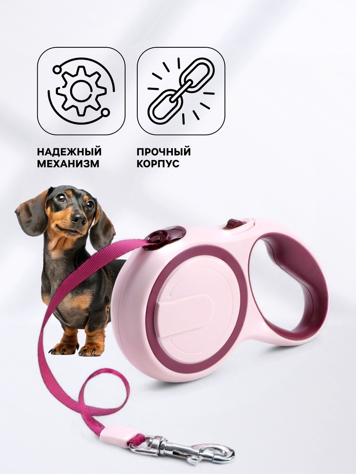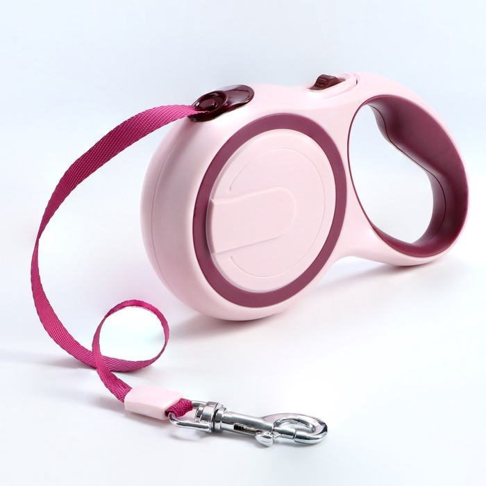 Рулетка с системой эффективного скручивания поводка, 5 м, до 20 кг, розово-бордовая