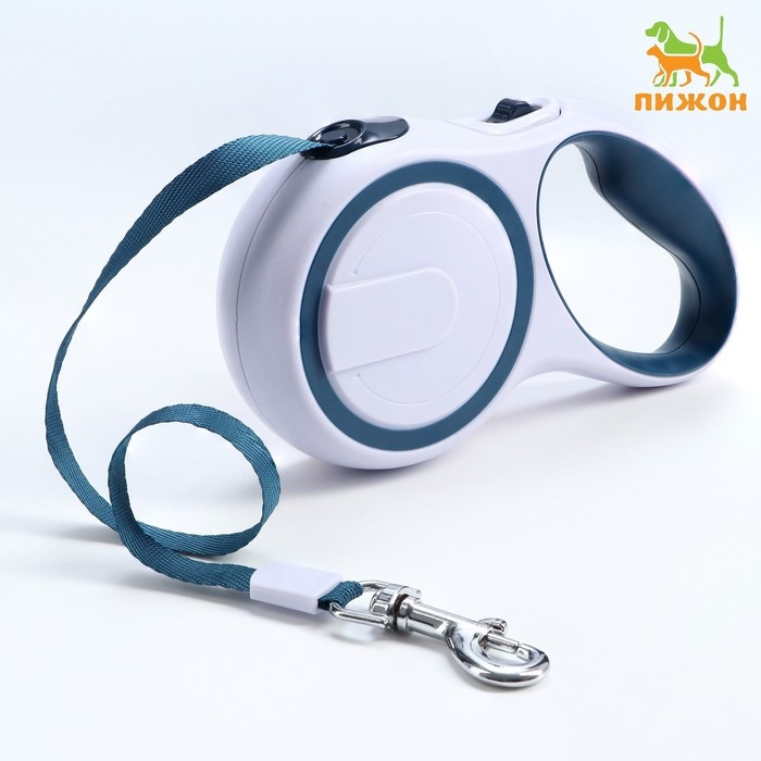 Рулетка с системой эффективного скручивания поводка, 5 м, до 20 кг, серо-синяя