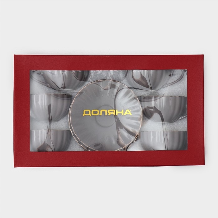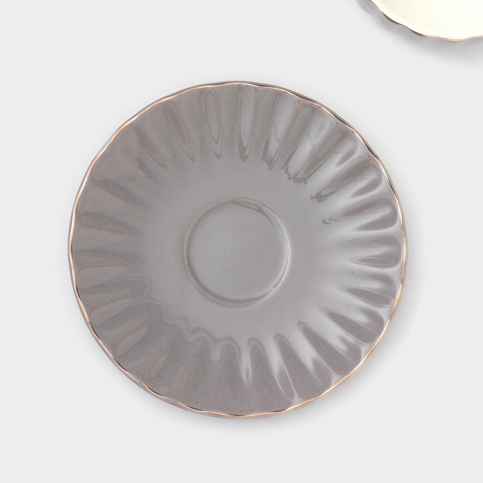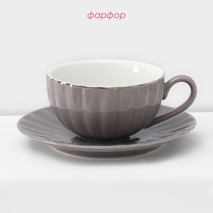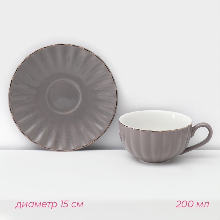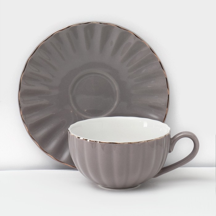 Сервиз фарфоровый чайный Доляна «Вивьен», 12 предметов: 6 чашек 200 мл, 6 блюдец d=15 см, цвет серый