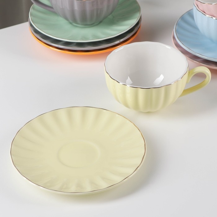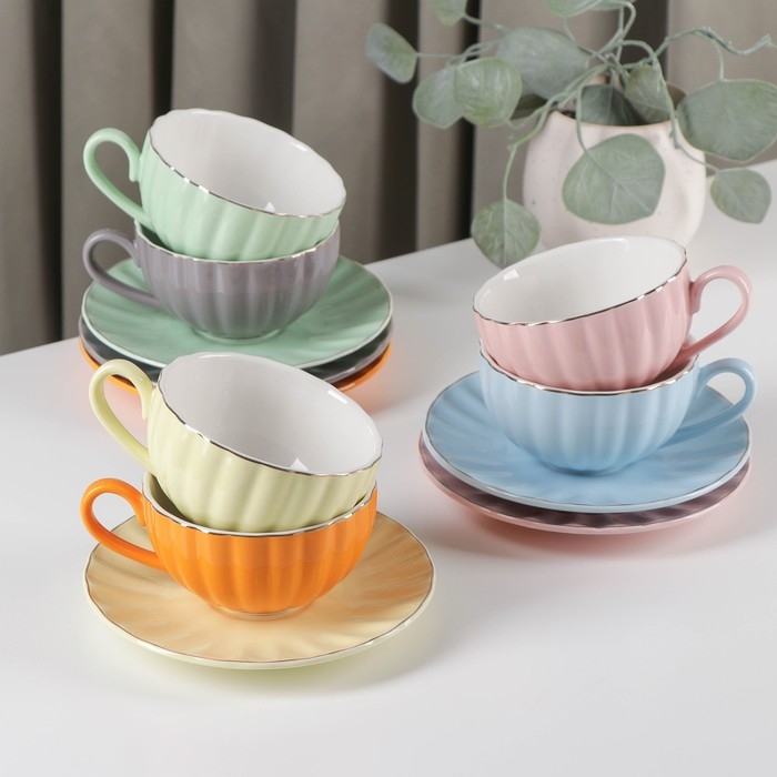 Сервиз фарфоровый чайный Доляна «Вивьен», 12 предметов: 6 чашек 200 мл, 6 блюдец d=15 см, цвет МИКС