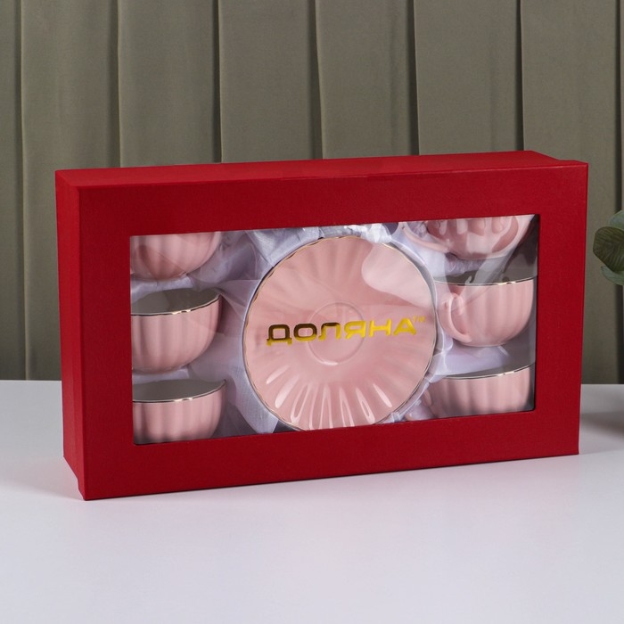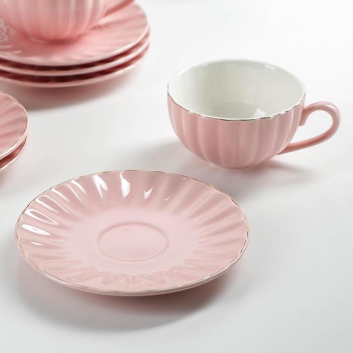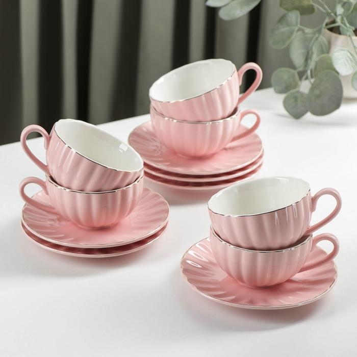 Сервиз фарфоровый чайный Доляна «Вивьен», 12 предметов: 6 чашек 200 мл, 6 блюдец d=15 см, цвет розовый
