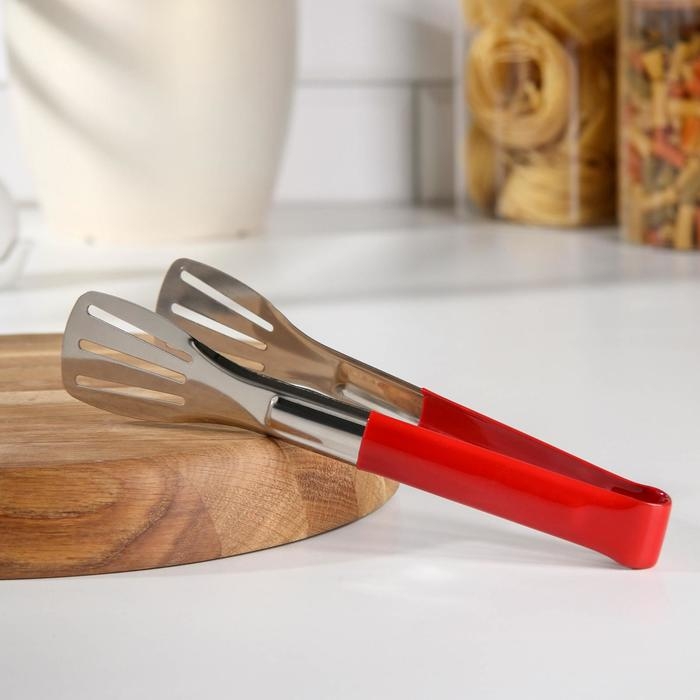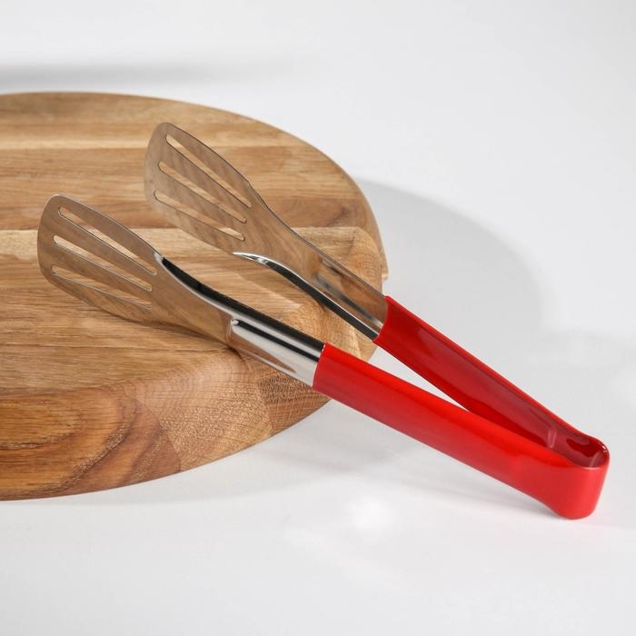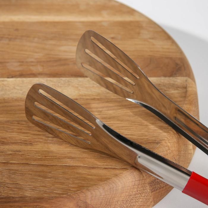 Щипцы кухонные Доляна «Яркость», 201 сталь, 24×4,5 см, цвет красный