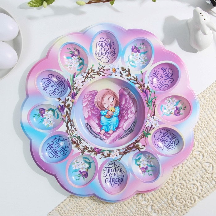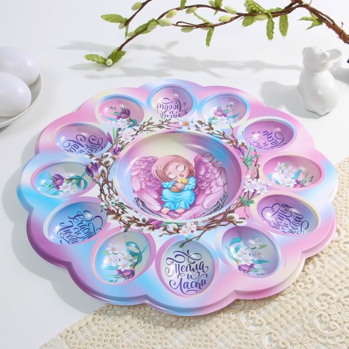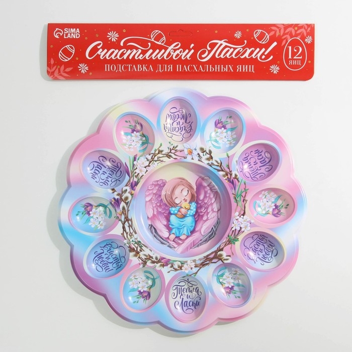 Пасхальная подставка на 12 яиц и кулич «Ангел» на пасху, 30 х 30 см.