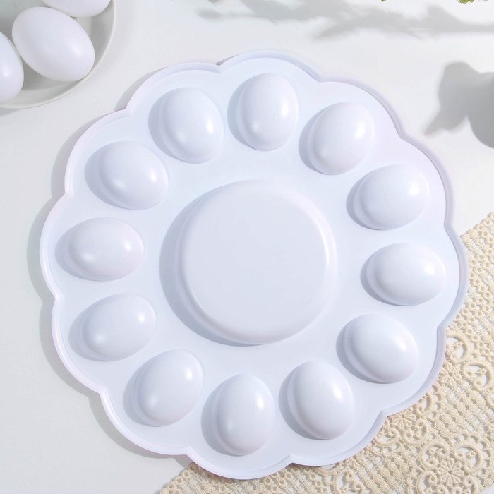 Пасхальная подставка предназначена для праздничного украшения Вашего стола в Светлый День Пасхи. В центре декоративной подставки находится углубление для пасхального кулича диаметром 11,5 см, а по окружности - 12 отверстий для пасхальных яиц. Диаметр декоративной подставки - 30 см.