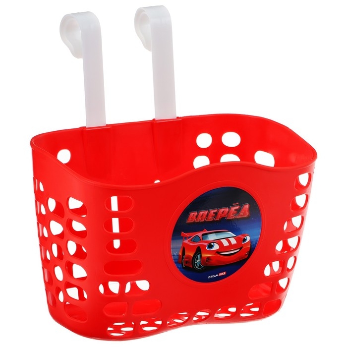 Корзина выполнена из пластика, имеет достаточно жёсткий и прочный каркас. Устанавливается на руль с помощью пластиковых кронштейнах.