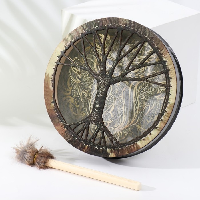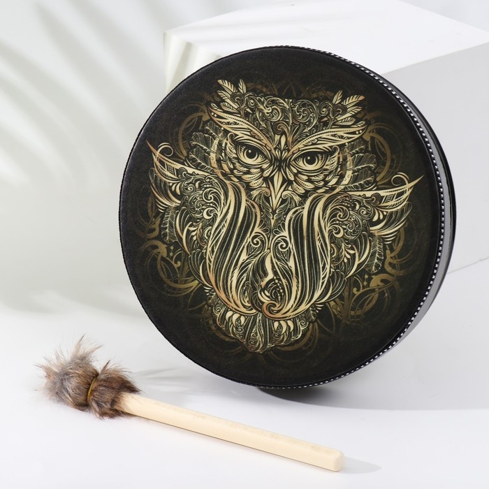 Шаманский бубен "Филин" с колотушкой 5х25х25 см