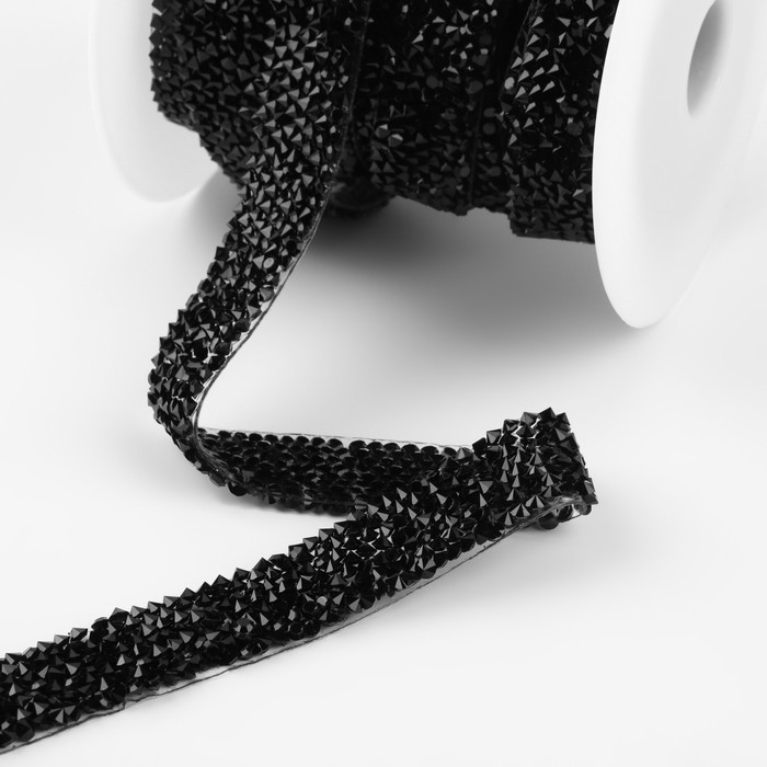 Стразы термоклеевые, ширина - 15 мм, 4,5 ± 0,5 м, цвет чёрный