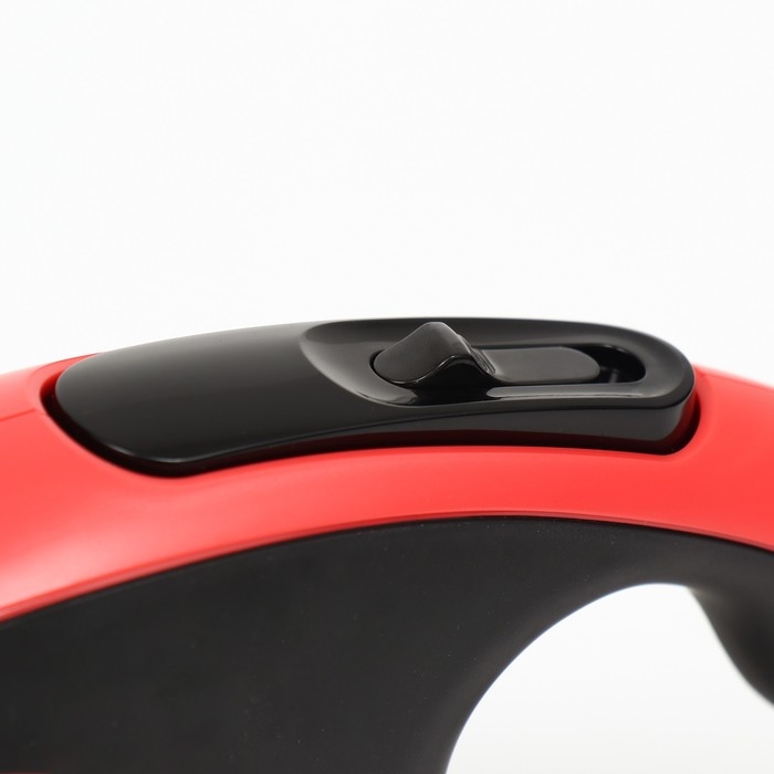 Рулетка оснащена кнопкой блокировки, которая позволяет фиксировать длину поводка на нужном участке.