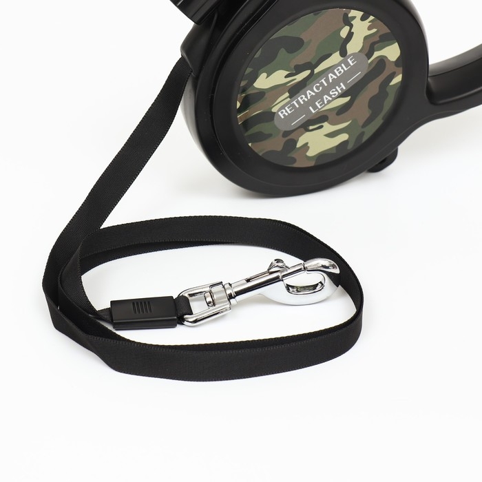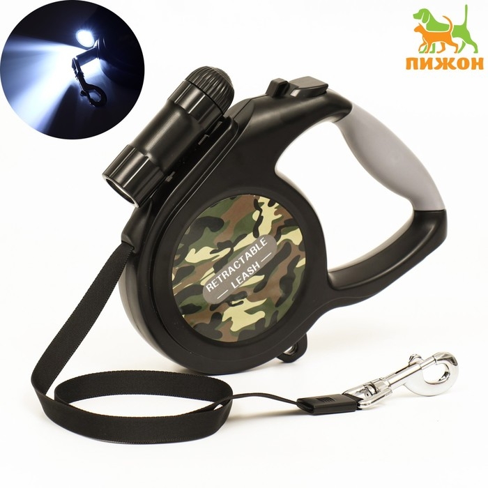 Съёмный LED-фонарик позволяет освещать путь в темное время суток, что делает прогулки безопаснее и комфортнее. Рулетку можно легко и удобно повесить на сумку. Также можно прикрепить контейнер для пакетов.