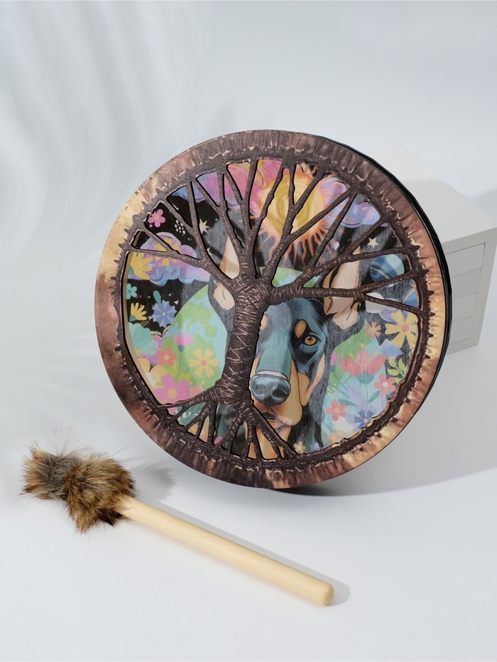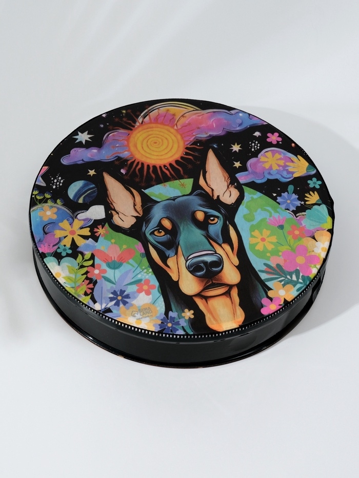 Шаманский бубен "Доберман в цветах" с колотушкой 5х25х25 см