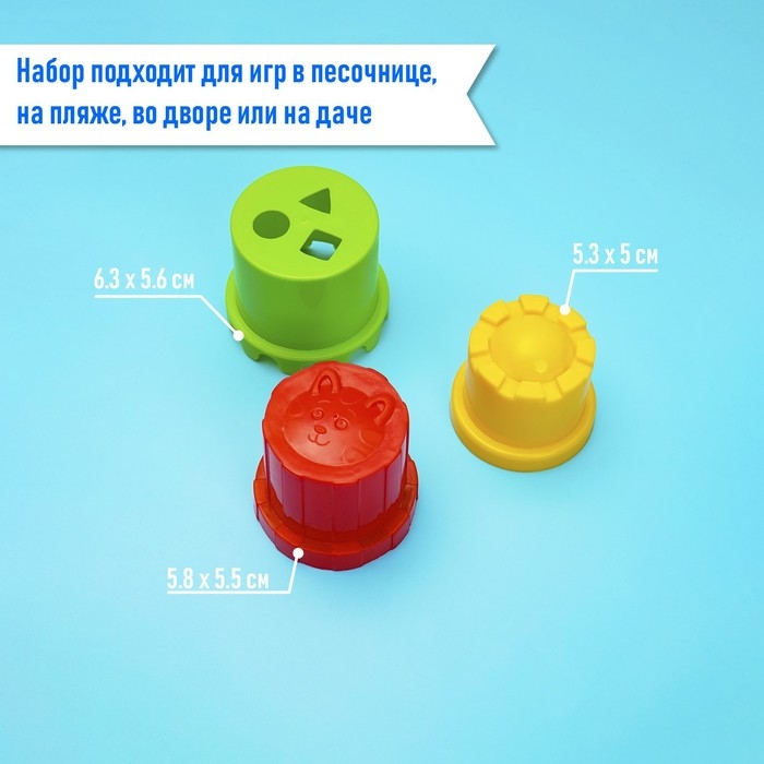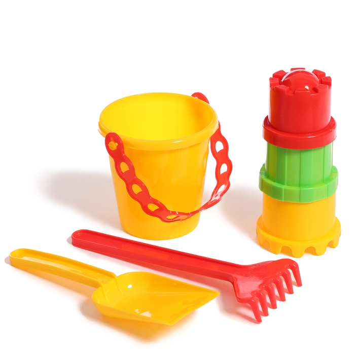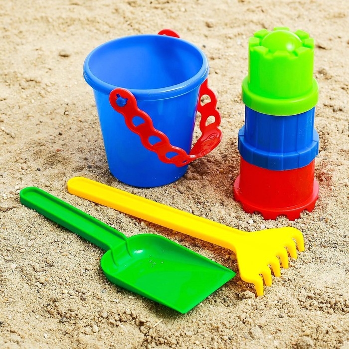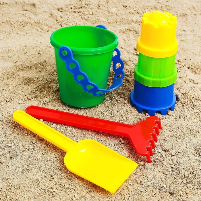 Набор для игры в песке №1: ведёрко, 4 формочки для песка, грабельки, лопатка, МИКС