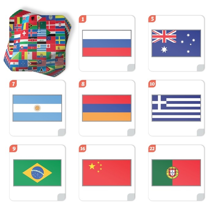 Перед вами игра 2 в 1: занимательное мемо и набор флагов разных стран! Переворачивайте карточки, находите парные картинки и побеждайте. Играть будет интересно детям и взрослым!