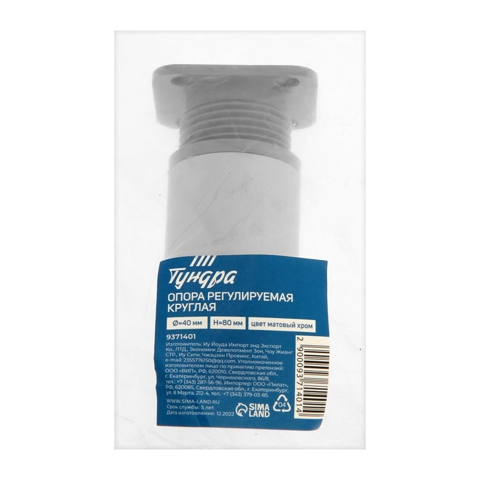 Опора регулируемая ORKR001CR ТУНДРА, круглая, d=40, H=80 мм, цвет матовый хром